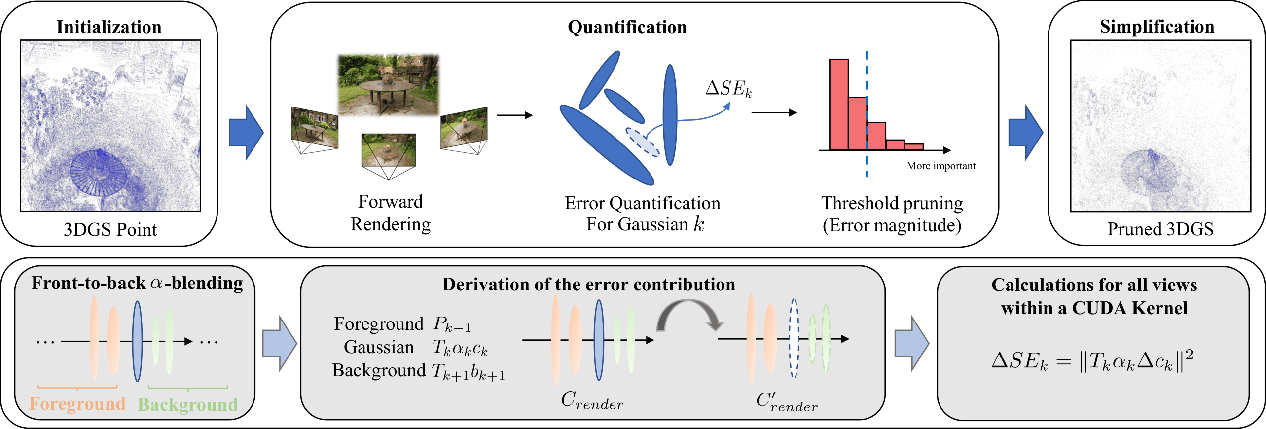 GaussianPOP: Principled Simplification Framework for Compact 3D Gaussian Splatting via Error Quantification [Project Page]